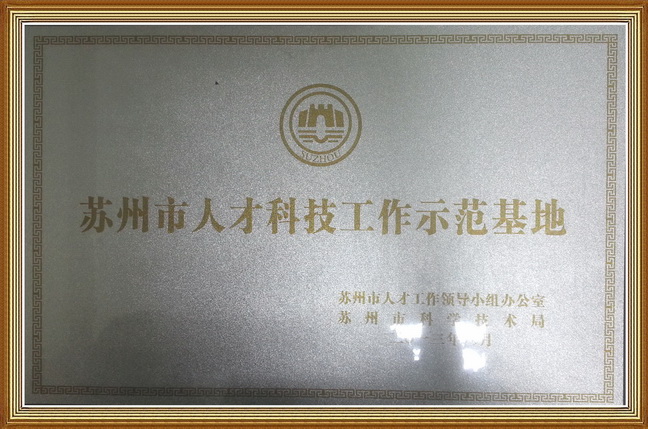 在產(chǎn)學(xué)研合作方面取得的成果,得到了蘇州市人才工作領(lǐng)導(dǎo)小組和蘇州市科技局的充分肯定,并將公司確認(rèn)為“蘇州市人才科技工作示范基地”,成為蘇州市9個(gè)示范基地之一。